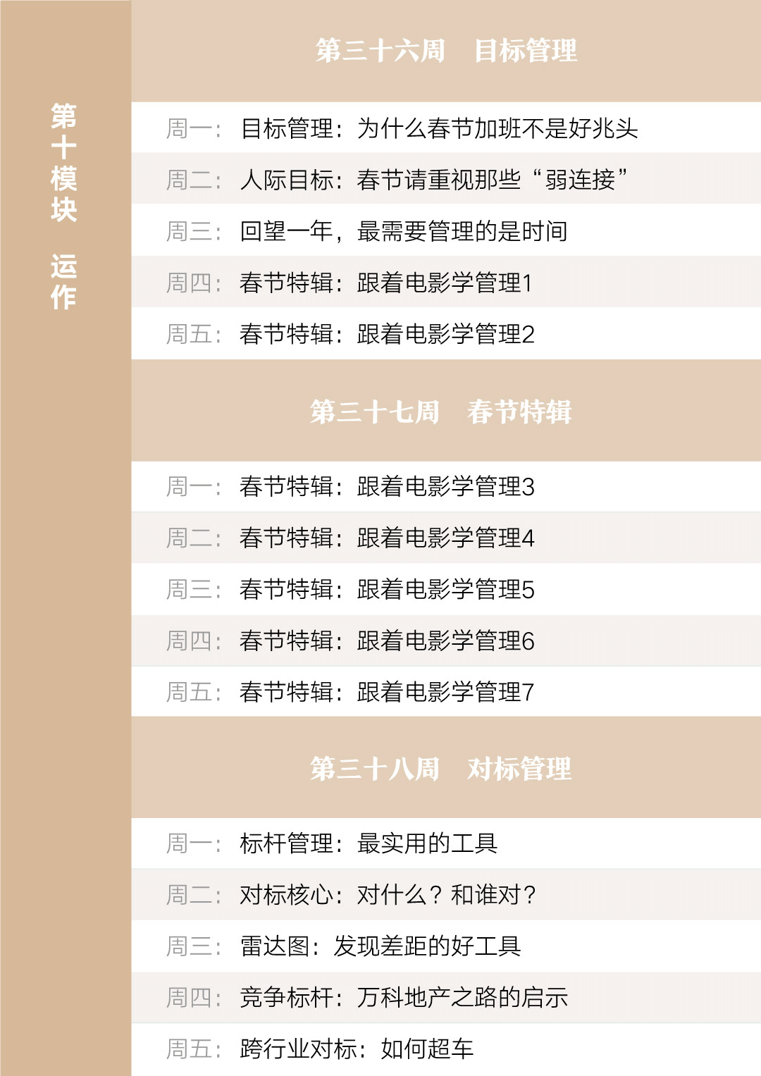 如果你现在动动手指,把文章划到末尾,就能看到我为你准备的全年课表,它包括了领导力、团队建设、战略管理、市场竞争、业绩评价与激励等一整套经典管理学体系。 所有概念都是骨架,我会用一年时间帮你填入血肉。最终,你会获得一个从实战出发、内容不断迭代的管理方法论。